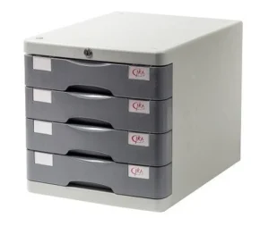 ארגז מגירות 4 תאים צבע אפור עם מנעול (29/36.5/28)