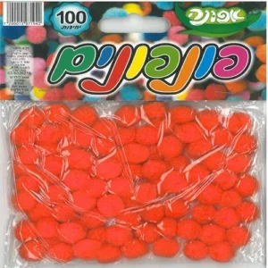 פונפונים 1.5 ס"מ צבע כתום 100 יח'