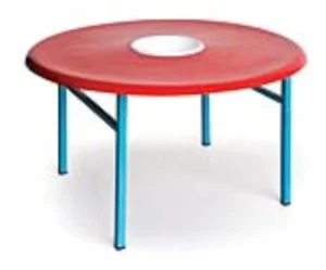 שולחן פרסה קוטר 120 רגלי מתכת שמנת