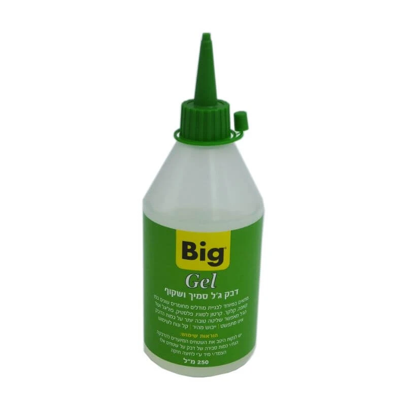 דבק ביג ג'ל סמיך 250 מ"ל, דבק שקוף המאפשר שליטה טובה יותר על כמות הדבק בכך שאינו מתפשט ומתייבש מהר