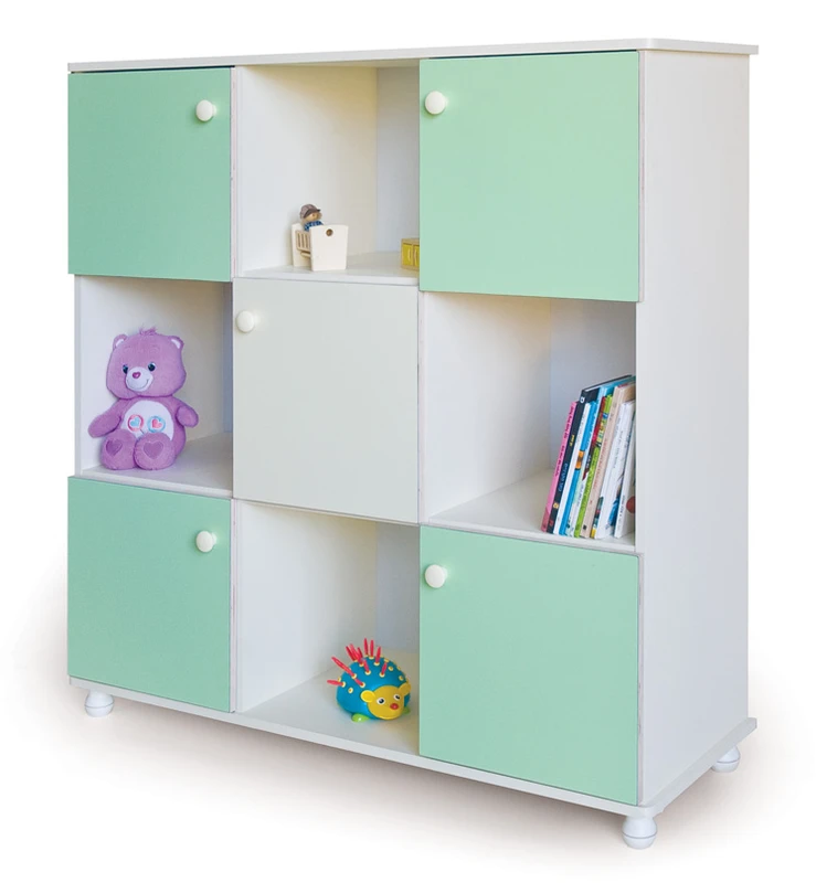 כוורת מעוצבת המחלוקת ל-9 תאים בעלת 5 דלתות צבע כוורת: בוק/שמנת. צבע דלתות: כחול,ירוק,סגול,אדום,שמנת,בוק