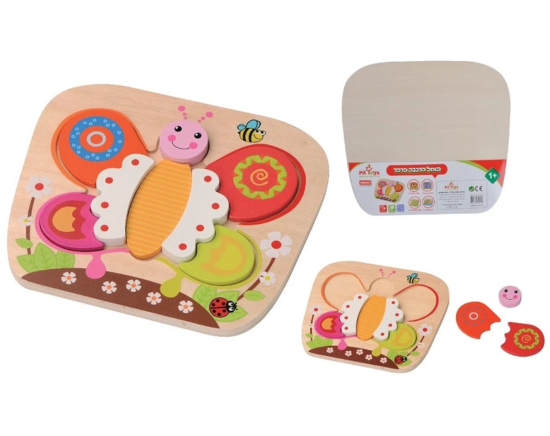 פאזל מעץ התאמת צורה – פרפר, מוצר מעולה ואיכותי מבית פיט טוייס-pit toys
